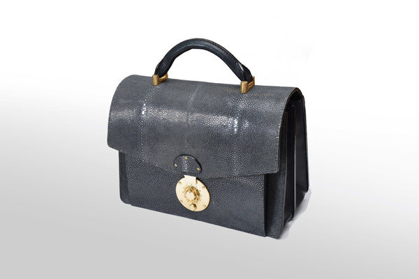 江戸木版画の伝統工芸師との共同作品。越前生漉奉書と言うとても丈夫な和紙に一枚一枚手で摺り上げた木版画。 版画と革を特殊な技法で貼り合わせエイ革と縫い上げた珠玉の一品。