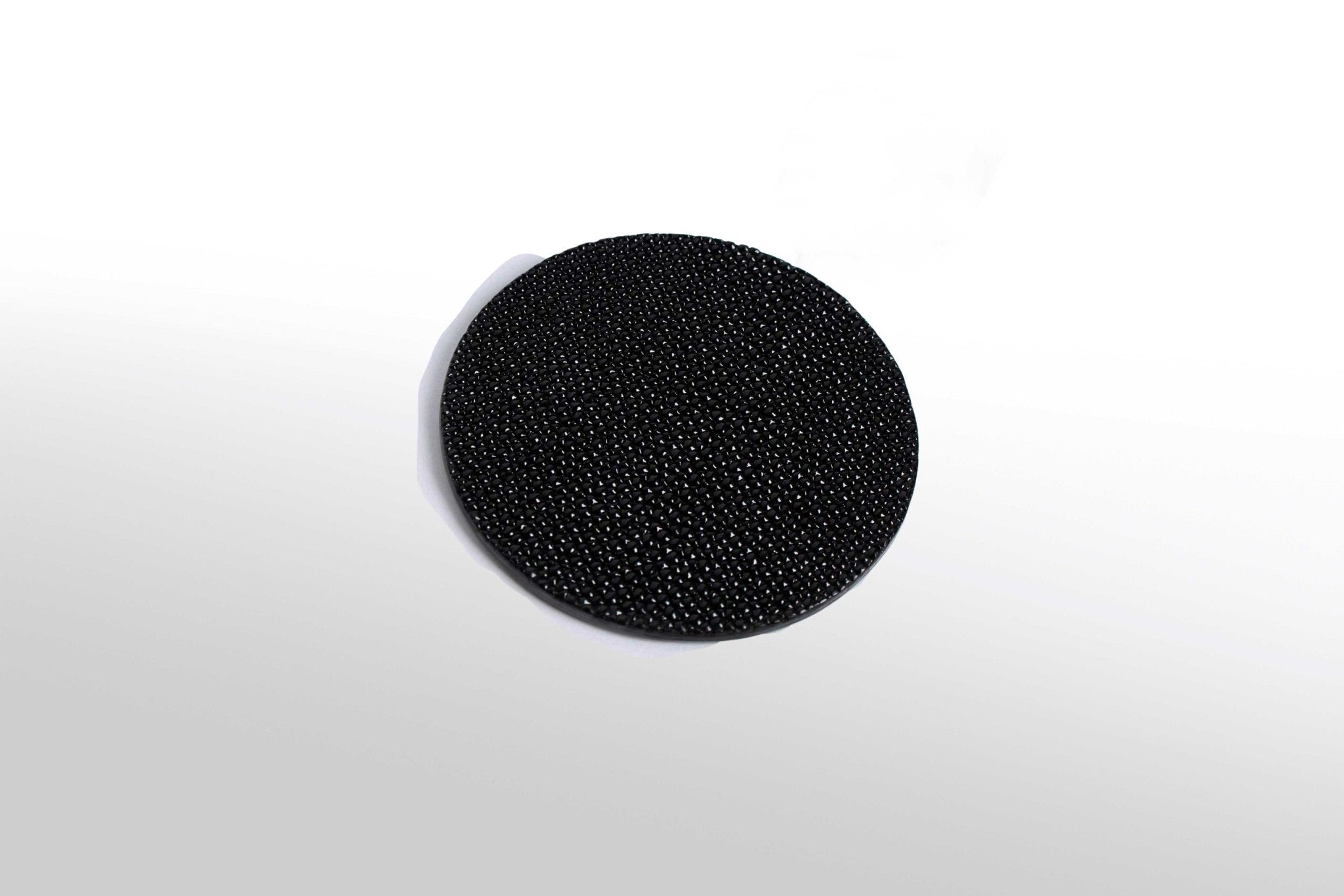 エイ革と牛革を貼り合わせしっかりとした厚みを出したコースター。香炉の敷物にもお使い頂けます。※防水加工は施しておりますが、過剰に濡れるご使用は革が反る原因になりますのでご注意ください。ガラスコップは付属しておりません。