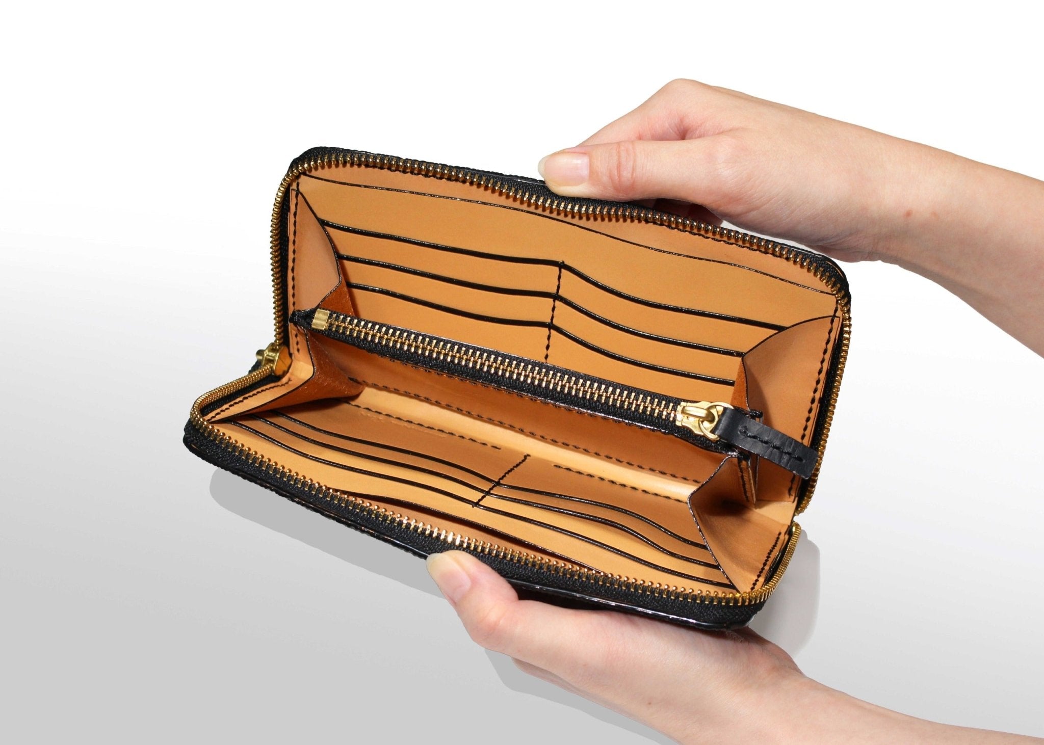 ファスナー長財布:キャビアブラック(内装色:キャメル)