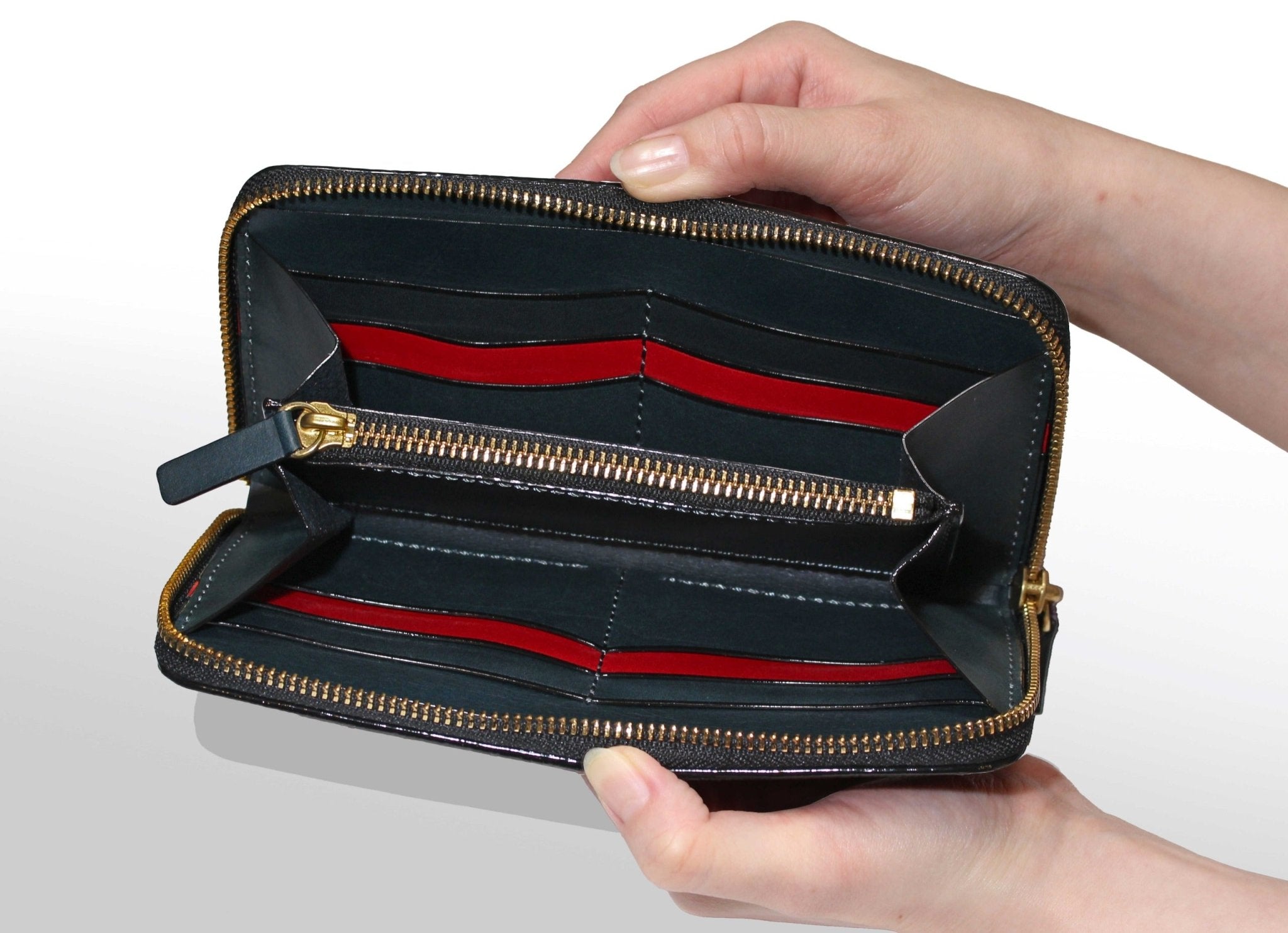 ファスナー長財布:パープルグラデーションA (手染め一点物)
