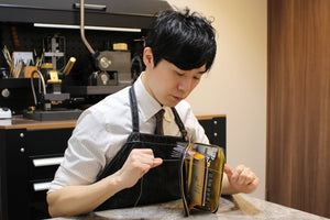 剣豪たちが愛用したエイ革は大昔から日本刀や甲冑に使われました。美しく丈夫なエイ革を自分にしかできない技術をもって、現代で最高のものづくりをしたい。そんな思いで一所懸命に仕立てた作品です。細かくこだわりが強いので時間はかかりますが、一つ一つ丁寧に仕上げています。皆様に感動が伝わるようなものづくりがしたいです。